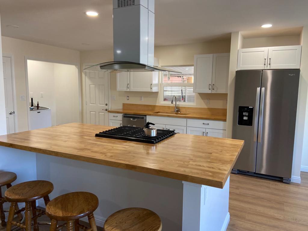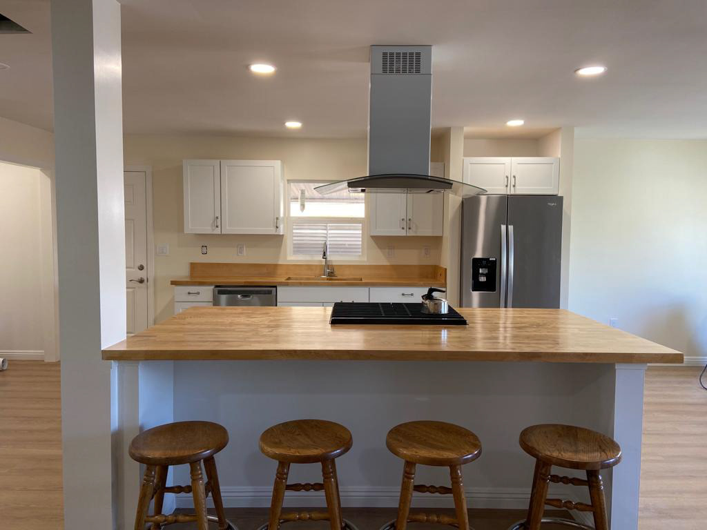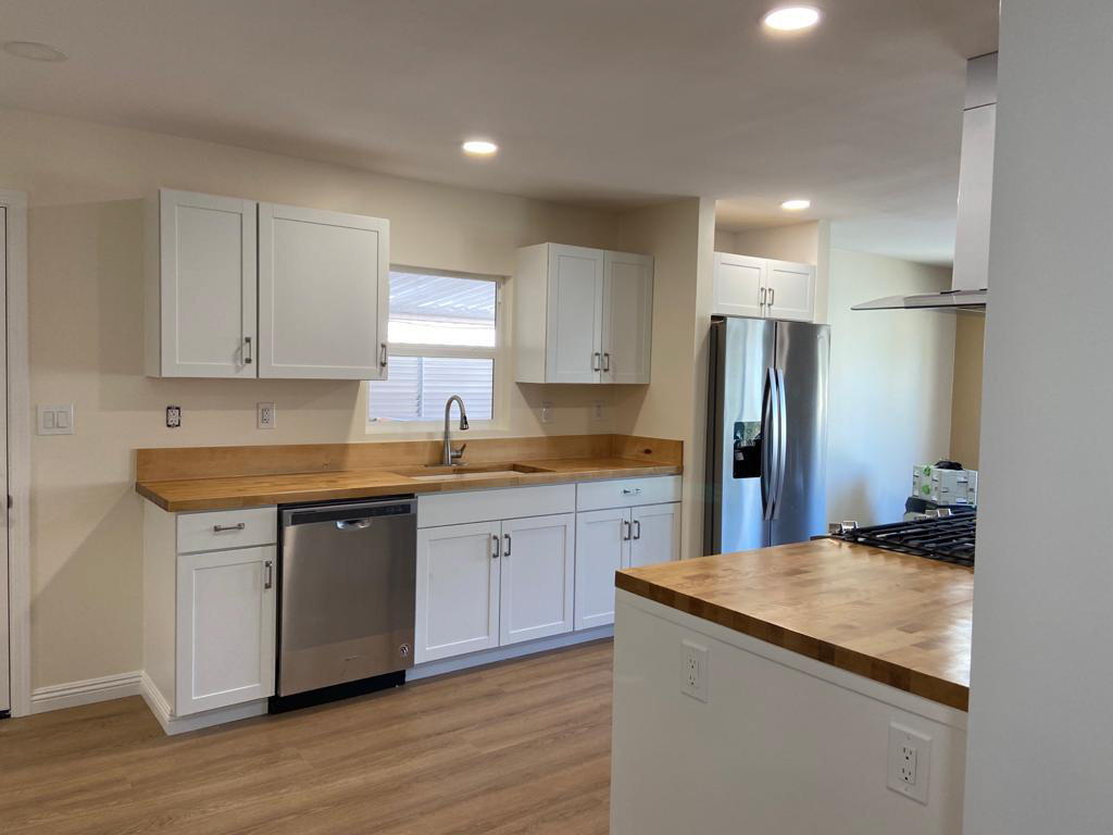 Then we: Rebuilt the plumbing system entirely. Rebuilt the electric system entirely. Rebuilt the subfloor. Installed drywall on all walls and ceilings with a smooth texture. Installed recessed lighting. Installed all new flooring. Built / Installed custom kitchen, 2 bathrooms. Installed new sliding door and all new windows. Install new doors, baseboards and moulding. Prime and paint all walls, doors, baseboards. Install / Build new closets/shelving.